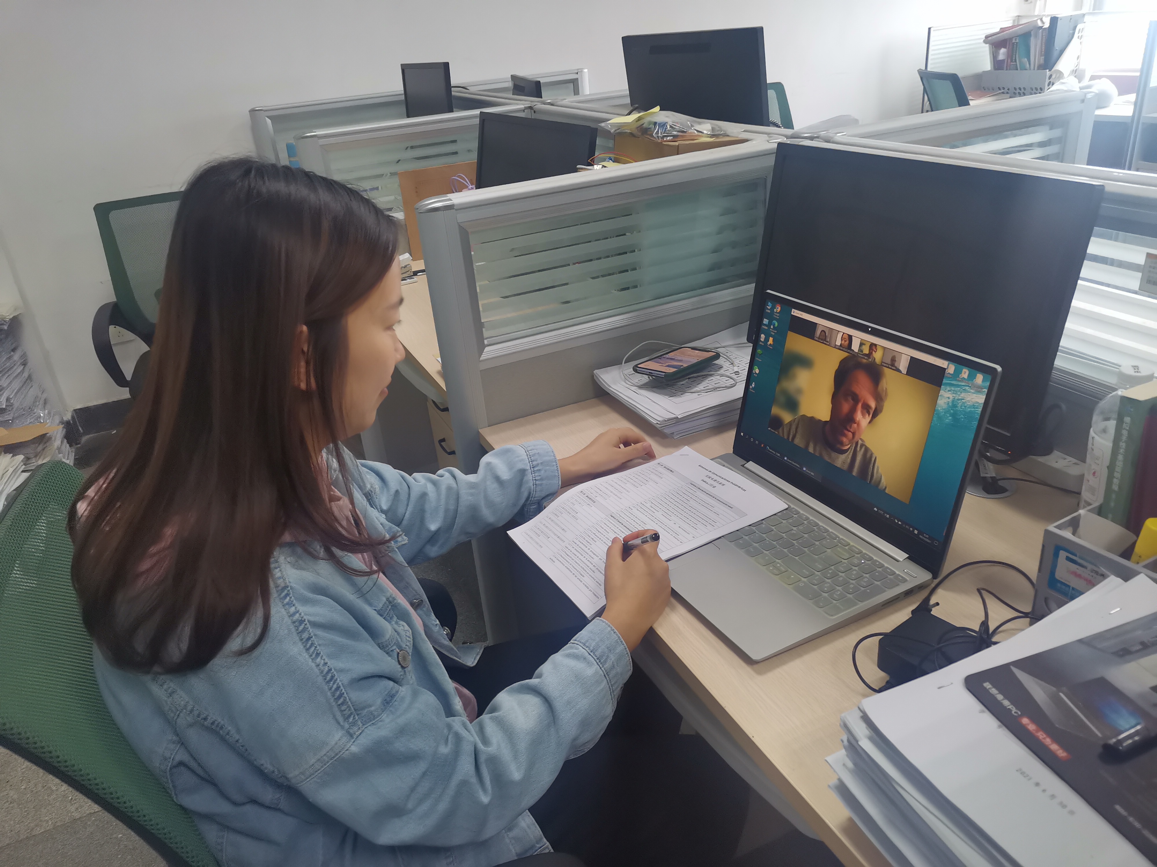 三场会议均以双方参会教师自我介绍环节展开讨论。在讨论中,明确了授课教师、助课教师和助教员工在课堂中的工作职责。因受疫情影响,2021-2022学年秋季学期的引进课程,将采用“线上授课+线下助课+线上线下平行答疑”方式进行。研讨过程中,参会教师就线上授课所使用的平台进行了深入的交流。此外,确定了课程教材、明确了课程授课内容,为授课教师与助课教师建立起良好沟通的桥梁。