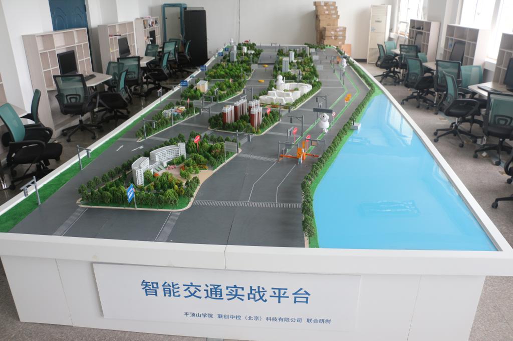 智能交通实战平台主要提供给员工一个测试平台的功能,台面上布置有多种形状的车道、路灯、高架、涵洞、车位、ETC、交通闸栏、红绿灯等结构,其内部自带控制系统和无线通信网络系统等构成。