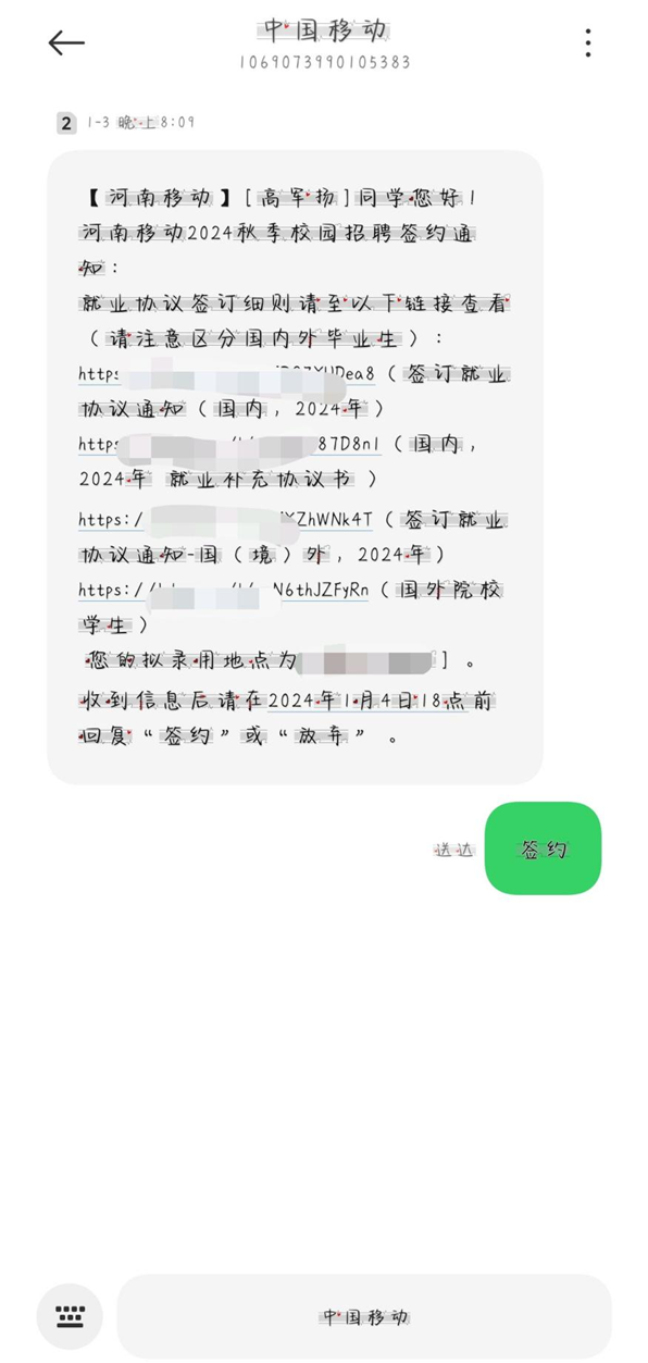 高军扬,伟德国际bevictor1949物联网工程专业二班员工,于2024年1月3日签约中国河南移动有限公司管理岗。