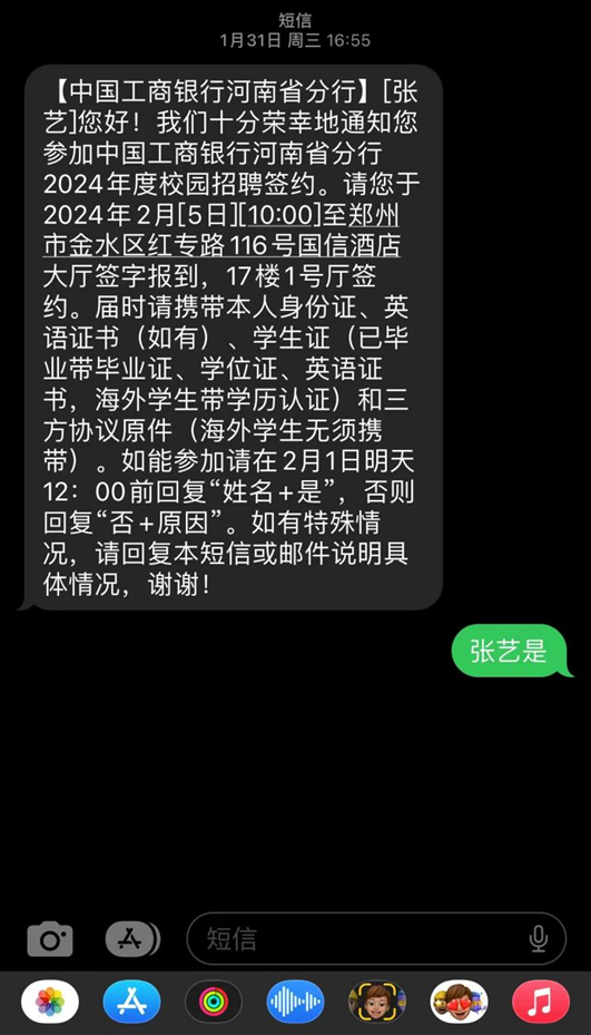 在进入大四这一学年开始,我就感受到了当前社会就业形势的压力,在加上院里毕业导师和辅导员白凤临老师的反复强调以及殷切的关怀之中,我开始了对秋招的准备。在秋招到来之时,我打开了中国工商银行的校园招聘的网页,在网申阶段,我把自己的精力放在自己的个人简历上面,详细的填写了本人的一些材料。但因为自己的专业是理工科,所以在与其他求职者的竞争之中并没有太大的优点,所以我能做的就是尽自己最大的努力去提升一些可以快速提升的能力,将简历写的更加的突出。非常幸运,我通过了网申阶段进入了面试阶段,而银行招聘最看重的正是面试阶段。为了能够通过面试阶段,我会去练习自己的普通话,练习自己的面部表情管理,练习语言组织能力,会提前找些往年的面试题进行练习。最终在公司和白老师的指导和帮助之下成功签约。