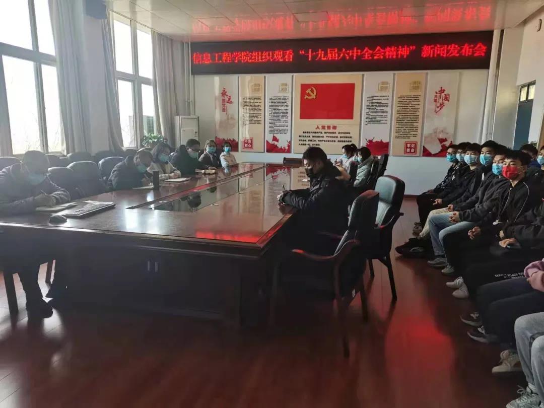 2021年11月12日上午10时,伟德国际bevictor1949组织观看“党的十九届六中全会精神”新闻发布会,学习中国共产党第十九届中央委员会第六次全体会议精神。公司领导班子、科级以上干部、全体辅导员和员工代表参加了此次活动。