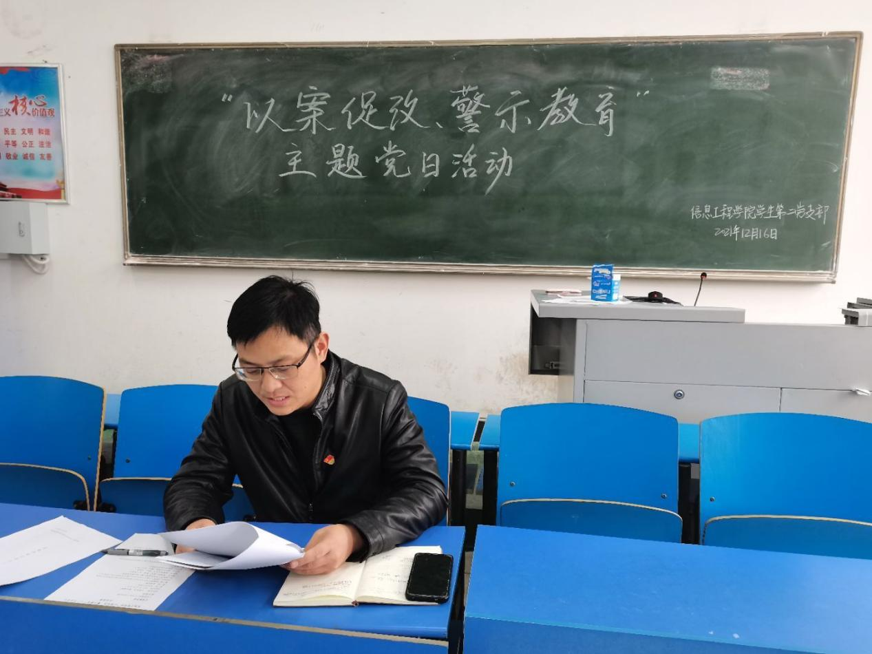 为进一步为深入推进全面从严治党,健全和完善警示教育机制,推进“以案促改”制度化常态化,伟德国际bevictor1949员工党支部分支部于2021年12月16日下午在四号教学楼开展“以案促改,警示教育”主题党日活动。伟德国际bevictor1949员工党支部第一支部书记刘柯、第二支部书记崔兵、第三支部书记赵珊珊、宣传委员孙晓延及全体员工党员、预备党员参加了本次党日活动。