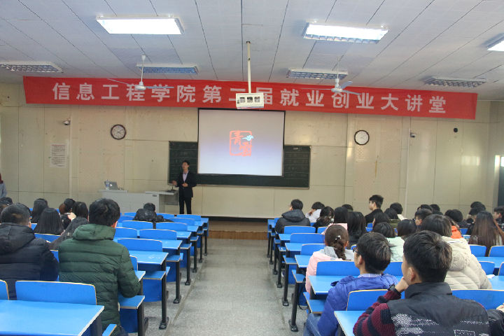张老师结合自身工作经验和创业经验给大家分享了一些自己对“互联网+”的想法,他在演讲中提到:正确的时代做正确的行业,勤奋努力是最好的工作方式。他分析了当前的就业趋势,对比了各专业的就业率和毕业后从事专业的平均工资,可以明显地看出相对于其他专业,计算机专业的就业率和工资都排在前列,这对于学习计算机的员工来说是机遇也是挑战;面对如今就业竞争压力大的现况,张老师指出:要想在众多人中脱颖而出,除了要有过人之处外,还需要勤奋努力,抓住机遇。张老师现场为同学们编写程序,让同学们看到编程功能的强大和未来的发展前景。最后,张老师通过PPT向同学们展示了青云公司优秀学员和青云公司的特色之处,并针对同学们未来就业方向展开问卷调查,本次创新创业大讲堂圆满结束。