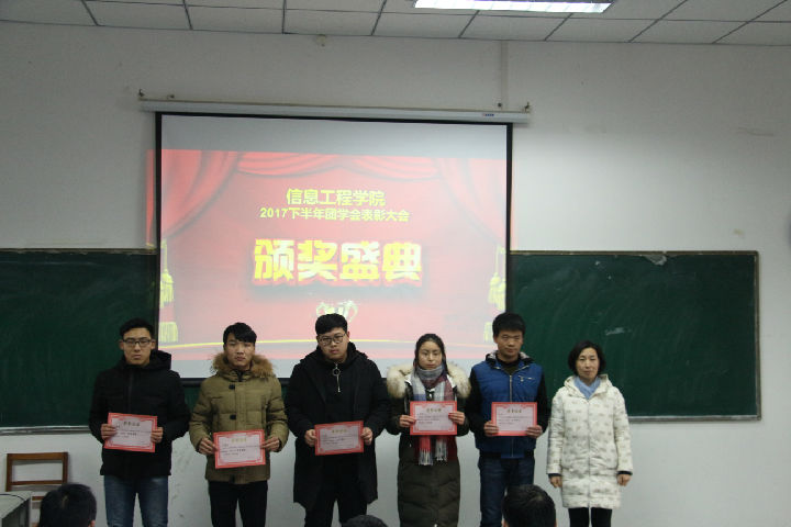 活动伊始,主持人介绍了与会人员。随后,崔兵老师宣读相关表彰文件;王瑞尧老师及王宇尧老师为优秀班级颁奖并合影留念;乔会珍老师及崔兵老师为优秀部门及优秀部长颁奖并合影留念;伟德国际bevictor1949第三届团学会部长代表为优秀干事进行颁奖并合影留念。活动表彰了15物联网工程一班 、15电子信息工程二班 16物联网工程一班等在内的六个优秀班级;办公室、组织部、外联部等在内的十个优秀部门;李敏、肖晨宇、白贺琪等在内的十个优秀部长;张泉福、杜凯、陈聪等在内的十个优秀干事。之后,员工会副主席张高松同学对本学期团学会工作进行了总结并对下学期的工作进行了规划。最后,辅导员崔兵老师进行了考前动员,告诫同学们一定要谨遵考试规定,并预祝大家能在考试中取得傲人的成绩。
