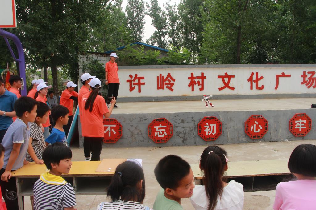 志愿者们为“三下乡”活动启动仪式精心准备了精彩的节目。仪式开始后,首先由许岭村党支部书记田金环代表全体村民对服务团的到来表示了热烈的欢迎,然后服务团带队老师常钰河对本次“三下乡”活动做总体介绍,随后,在村民们期待的目光中,志愿者们依次走上台将精心准备的节目全盘托出。其中,伟德国际bevictor1949特有的机器人舞蹈展演受到了村民们的一致好评,小朋友们满脸惊奇,都围着操控机器人的志愿者想要了解机器人的构造和原理。“哥哥,你是怎么让它跳舞的啊?”“哥哥,可以再给我们展示一下这个机器人吗?”一声声的哥哥,叫的那么可爱那么亲切,叫出了小朋友们对机器人的热爱,他们专注的目光透露出对科学知识的热爱与向往。