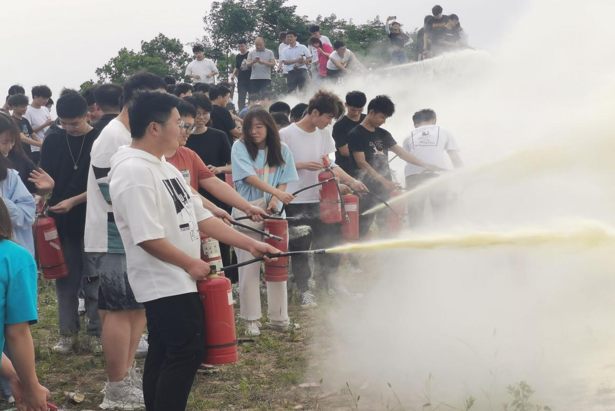 演练开始前,由负责人讲解有关火灾现场的应急处置方案,灭火器的原理,基本操作及注意事项。此外,负责人还现场演示了灭火器使用的操作程序,让同学们亲身体会灭火器的使用方法,以及发生火灾时如何采取应急措施,让同学们都能正确掌握使用灭火器的操作方法。