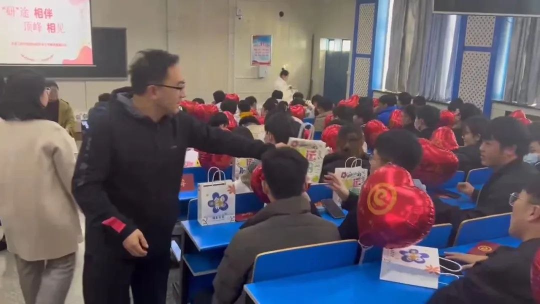 活动现场,党委书记王向前代表公司全体师生为2020级考研学子们送上诚挚的祝福和精心准备的“考研加油大礼包”。