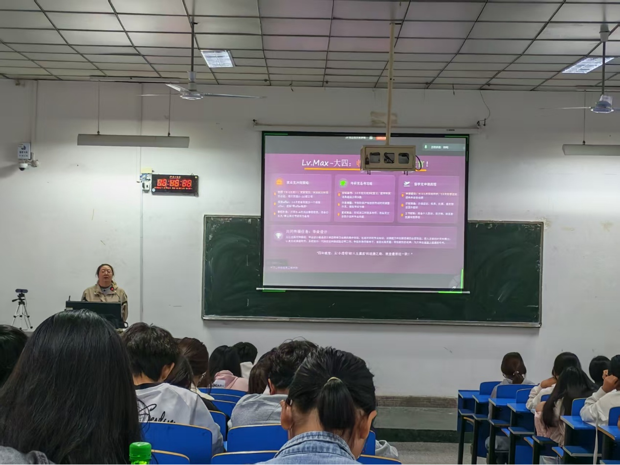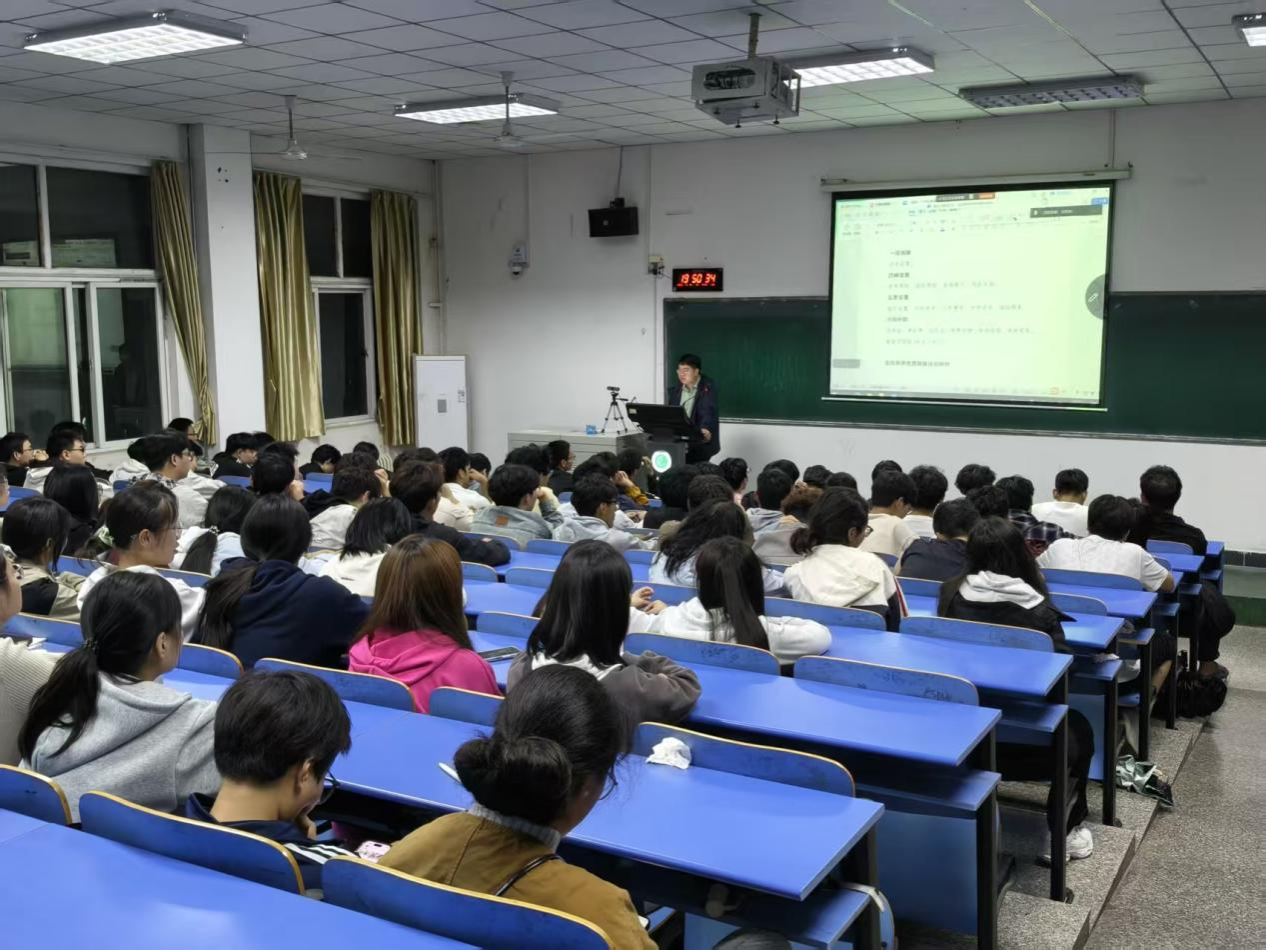 学工办公室主任赵珊珊首先为新生们带来了老员工职业规划专题讲座。赵老师强调,大学是职业生涯的起跑线,科学的规划至关重要。她通过生动的案例,深入浅出地讲解了如何结合专业特色、个人兴趣与市场需求,进行自我探索和职业目标设定,鼓励同学们“从大一开始思考未来,将学业规划与职业梦想紧密相连,为四年后的高质量就业或深造打下坚实基础”。