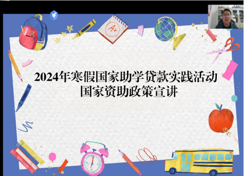 在 2024 年2月1日,寒假期间,伟德国际bevictor1949积极将国家助学贷款实践活动中的国家资助政策宣讲搬至线上,开启了一场别开生面的 “云端” 资助知识传递之旅,致力于让资助政策惠及更多学子。