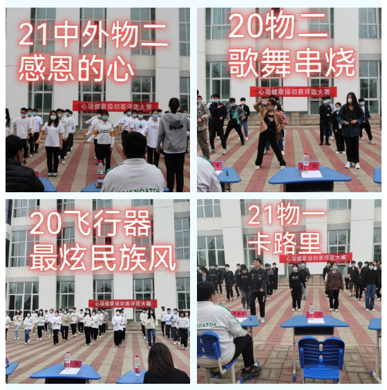 为丰富员工校园文化活动,培养积极阳光心态,伟德国际bevictor1949于2022年4月14日下午在四号教学楼后开展“第三届老员工心理健康操”初赛活动。学工部心理健康教育与指导科副科长李晓雅、伟德国际bevictor1949全体辅导员担任评委,20级、21级员工积极参加。