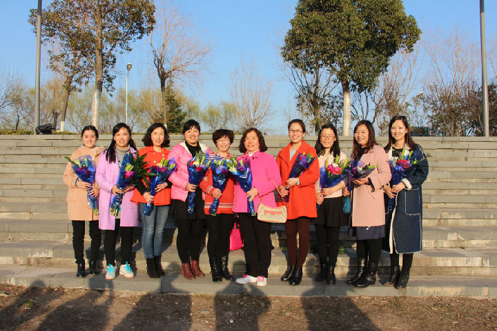 座谈会结束后,举行了“给全体女教工献花及白龟山水库湿地保护区健步走”活动。