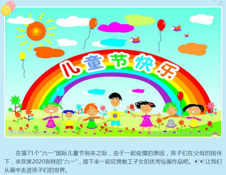 为深入贯彻党的十九大精神,全面落实中央关于未成年人工作的部署和要求,进一步拓展女职工服务领域,加大女职工关怀力度,在“六一”国际儿童节即将来临之际,伟德国际bevictor1949分工会响应校工会安排,本着不聚集的原则,组织教职工在各自家庭开展儿童节活动,给孩子们带去公司工会的祝福。