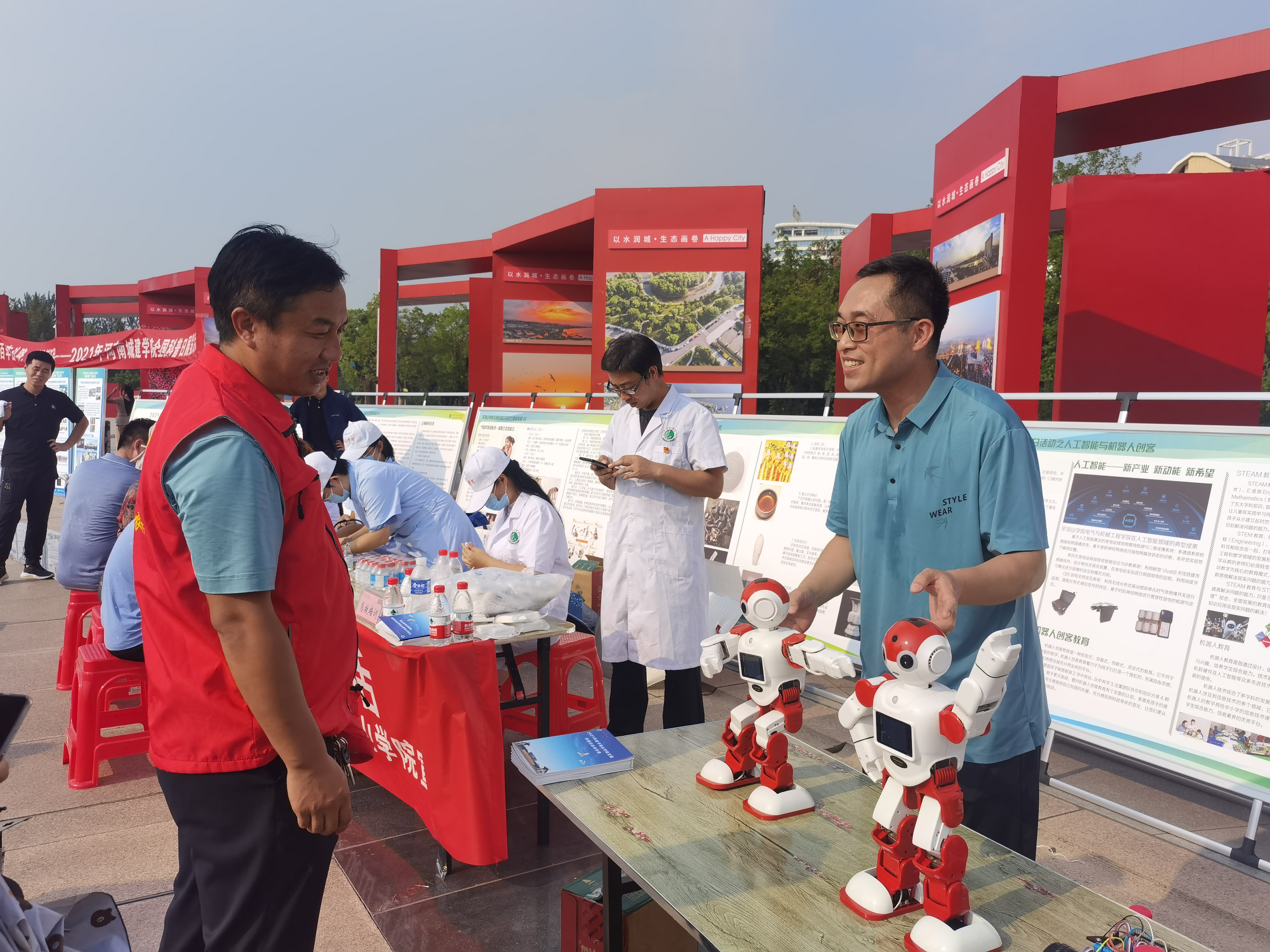 活动中,市领导、平顶山公司党委副书记袁桂娥等人来到公司人工智能展区前,周老师为大家现场演示了如何操作机器人,多才多艺的机器人得到领导及市民朋友们的一致好评。