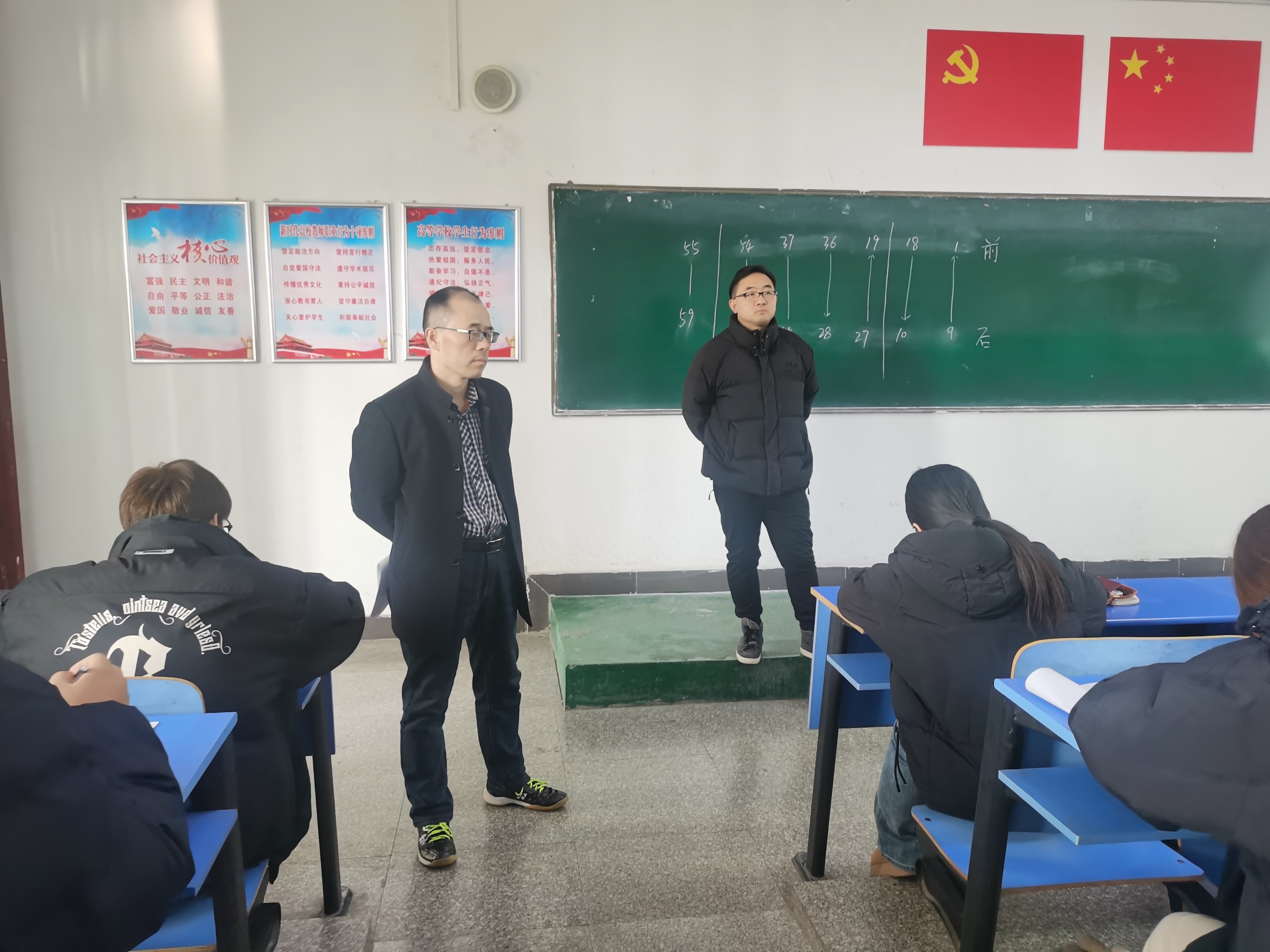 1月2日上午,公司本学期期末考试在严肃、紧张、有序的气氛中正式开始。领导班子王向前、樊爱宛、时合生、胡海峰到公司各考点巡视了考场环境、考生答题、教师监考等情况。从检查情况看,公司监考教师认真履责,同学们考试态度端正,精神饱满,自觉遵守考试纪律,考场秩序井然有序。