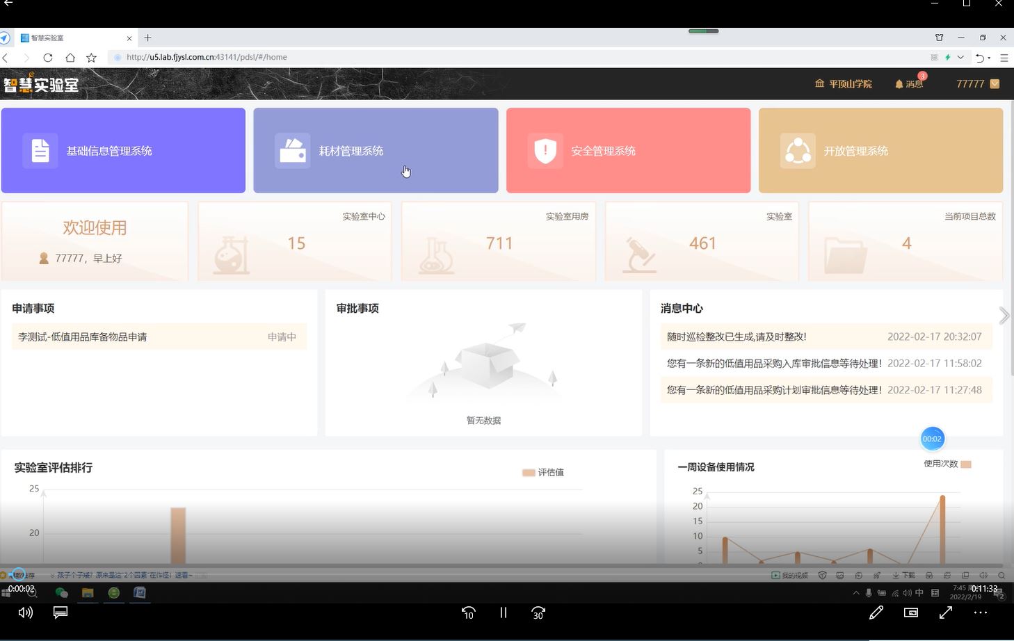 2022年2月17日晚上19:00-21:00,伟德国际bevictor1949组织人员参加了实验室管理组织的实验室信息化综合管理平台培训。