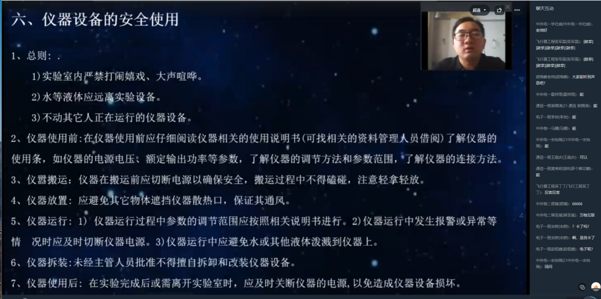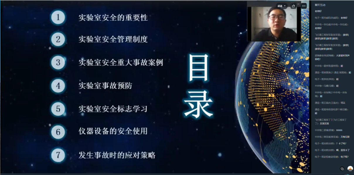 根据实验室管理处《关于做好2022年实验室安全教育的通知》要求,为加强实验室安全管理,强化师生实验室安全意识,提高师生安全技能,预防和杜绝实验室安全事故的发生,2022年9月9日上午8:30-10:00,通过腾讯会议的方式,伟德国际bevictor1949副经理胡海峰为新进教师及2022级新生进行了一场生动的实验室安全教育相关知识讲座。