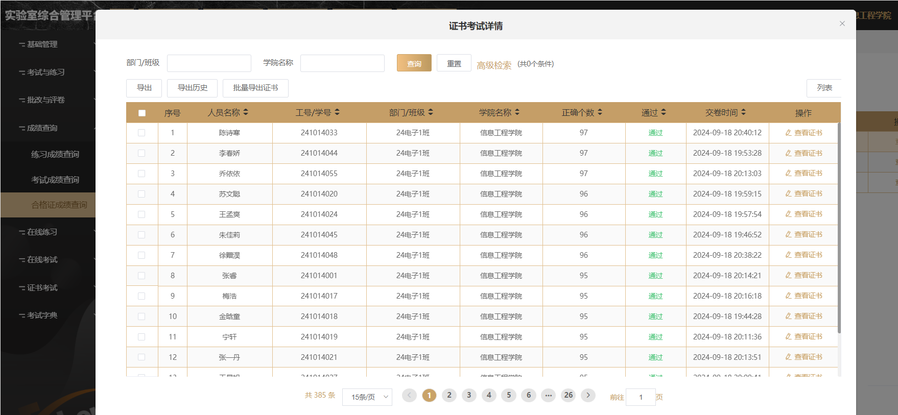 培训结束后,安排2024级新生通过实验室综合管理平台安全管理系统进行实验室安全教育准入考试。新生在参加实验室安全教育培训及安全教育准入考试并考核合格后,与公司签订实验室安全承诺书,方可具备进入实验室资格。